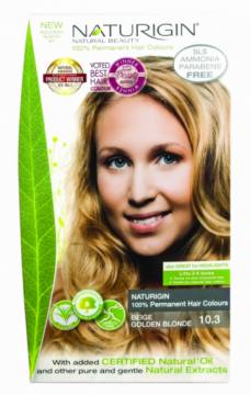 NATURIGIN BEŽ ZLATO BLOND barva, je trajna barva za lase, proizvedena v Evropi in sicer na Danskem.
