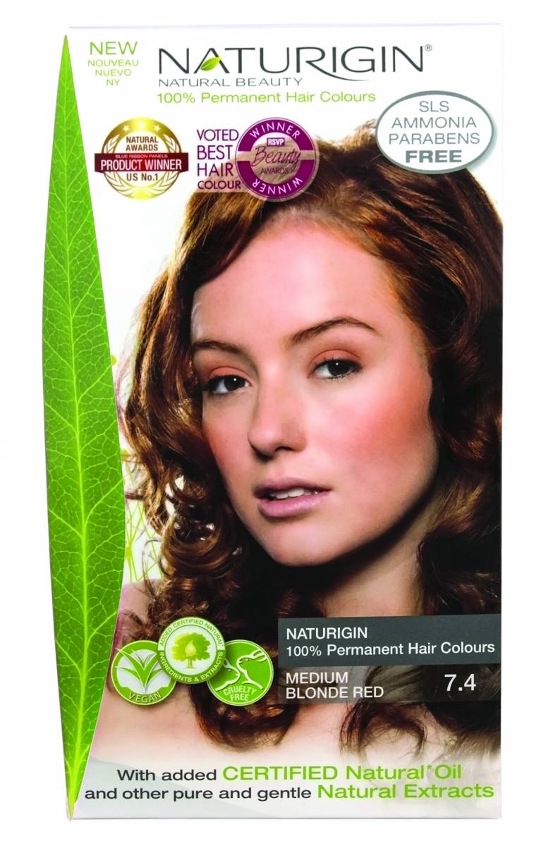NATURIGIN  SREDNJE BLOND RDEČA barva, je trajna  barva za lase, proizvedena v Evropi in sicer na Danskem.